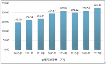 2010-2017年全國鈦白粉表觀消費(fèi)量