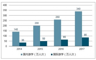 我國國內(nèi)游學(xué)和國際游學(xué)人數(shù)