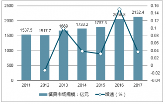 2011-2017年中國(guó)餐具行業(yè)市場(chǎng)規(guī)模及增速情況