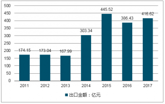 2011-2017年中國(guó)日用陶瓷制品出口金額