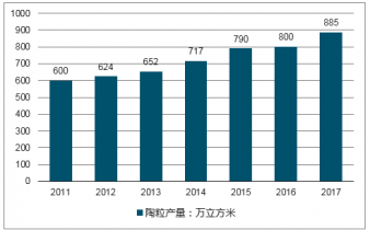 2011-2017年中國(guó)陶粒行業(yè)產(chǎn)量情況