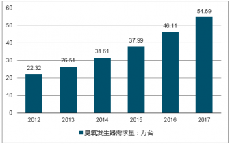 近幾年,隨著國家對環保重視的不斷加強,臭氧發生器應用領域不斷擴張,從傳統的工業級領域擴張到商業級領域。2017年我國臭氧發生器行業市場規模28.64億元,同比2016年的21.87億元增長了30.96%。