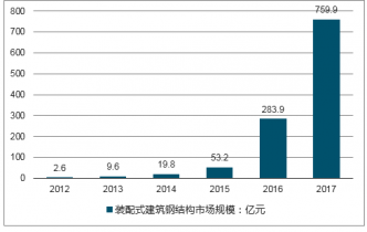 2016年我國(guó)裝配式建筑鋼結(jié)構(gòu)市場(chǎng)規(guī)模增長(zhǎng)至283.9億元,隨著裝配式建筑領(lǐng)域鋼結(jié)構(gòu)項(xiàng)目的增長(zhǎng),2017年我國(guó)裝配式建筑鋼結(jié)構(gòu)市場(chǎng)規(guī)模達(dá)到759.9億元。