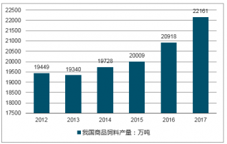 截至2017 年12 月31 日, 全國共有11426 家飼料和飼料添加劑生產企業,配合飼料、濃縮飼料和精料補充料生產企業7492 家, 添加劑預混合飼料生產企業2349 家;飼料添加劑和混合型飼料添加劑生產企業1785 家;單一飼料生產企業2086 家。2017 年全國商品飼料總產量22161.2 萬噸, 同比增長5.9%。其中,配合飼料產量19618.6 萬噸,同比增長6.7%; 濃縮飼料產量1853.7 萬噸, 同比增長1.2%;添加劑預混合飼料產量688.9 萬噸,同比下降0.3%。