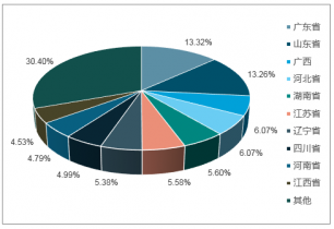 2016 年飼料總產量20918 萬噸,2017 年22161 萬噸, 凈增長量1244 萬噸。從區域生產情況來看, 2017年廣東省飼料產量 2951萬噸 ,同比增長4.5%,占全國總飼料總產量的13.32%,山東省飼料總產量為2939萬噸,同比增長 13.6% ,占全國總飼料總產量的13.26%,廣西飼料總產量1346萬噸,同比增長10.7%,占全國總飼料總產量的6.07%。