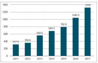 2011-2017年中國第三方檢測市場規(guī)模情況
