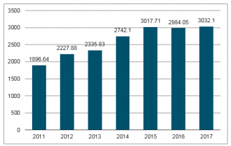 2017年,水電行業(yè)總產(chǎn)值實現(xiàn)3032.10億元,占全國GDP的0.37%。隨著資源約束日益加劇,人口不斷增長,工業(yè)化、城鎮(zhèn)化快速推進(jìn),水電行業(yè)的發(fā)展對工業(yè)農(nóng)業(yè)具有重要作用。