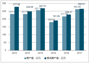 2017年中國(guó)錫產(chǎn)值為262.88億元,同比增長(zhǎng)20.98%;2016年中國(guó)錫產(chǎn)值為217.29億元。2017年中國(guó)錫消費(fèi)產(chǎn)值為265.51億元,同比增長(zhǎng)16.24%;2016年中國(guó)錫消費(fèi)產(chǎn)值為228.41億元。