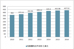 2010-2016 年全球鉛酸蓄電池市場規模