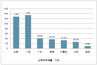 我國錫礦資源保有儲量分省市統(tǒng)計
