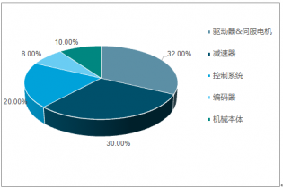 工業機器人主要包括控制系統、動力系統及本體機械結構三大部分。 減速機是動力系統子結構傳動裝置的核心零部件,其主要功能是達到減速增矩的作用,從價值量看,減速器占比機器人本體制造成本的 30%以上。
