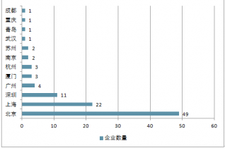 在2019年中國人工智能商業(yè)落地100強企業(yè)地區(qū)分布中,企業(yè)總部位于北京的企業(yè)最多,達到49家;其次是上海,企業(yè)有22家;第三是深圳,企業(yè)為11家。