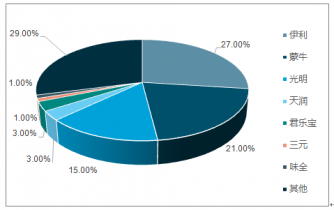 2019年1月中國各酸奶品牌市場銷售額占比