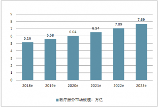 預(yù)計(jì)2019年至2023年我國(guó)醫(yī)療服務(wù)行業(yè)市場(chǎng)規(guī)模將持續(xù)保持增長(zhǎng),預(yù)計(jì)2020年將超過6萬(wàn)億市場(chǎng)規(guī)模,2023年將達(dá)到7.69萬(wàn)億。