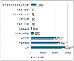 2017年末,全國中醫(yī)類醫(yī)療衛(wèi)生機構(gòu)總數(shù)達54243個,比上年增加4716個。其中:中醫(yī)類醫(yī)院4566個,中醫(yī)類門診部、診所49632個,中醫(yī)類研究機構(gòu)45個。與上年比較,中醫(yī)類醫(yī)院增加328個,中醫(yī)類門診部及診所增加4391個。