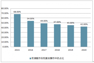 2015-2020年低溫酸奶在乳酸發(fā)酵奶中的占比情況
