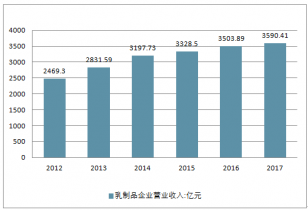2012-2017年中國乳制品企業(yè)營業(yè)收入走勢