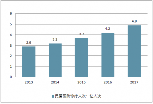 2013-2017年中國民營醫(yī)院診療人次