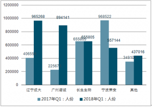 2017 年第.一季度總批簽量為 342.2 萬(wàn)人份,而 2018 年第.一季度批簽發(fā)量為 350.9 萬(wàn)人份, 同比去年上升 2.54%,產(chǎn)能保持平穩(wěn)。其中市場(chǎng)份額變化最大的為廣州諾誠(chéng)與長(zhǎng)生生物,其批簽發(fā)量比例分別增加 18.88%和減少 24.32%。