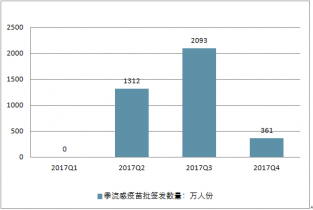 2017 年各季度季節(jié)性流感疫苗銷售數量(萬人份)