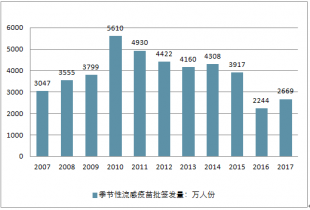 歷年季節(jié)性流感疫苗批簽發(fā)量變化