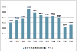 歷年季節(jié)性流感疫苗批簽發(fā)量變化
