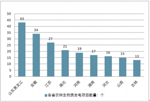 2019年全國各省農(nóng)林生物質(zhì)發(fā)電項(xiàng)目數(shù)量