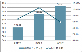 2014-2016年中國污水處理行業(yè)銷售收入及增長率