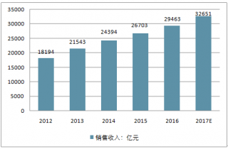 2012-2017年中國(guó)醫(yī)藥工業(yè)銷(xiāo)售收入走勢(shì)分析
