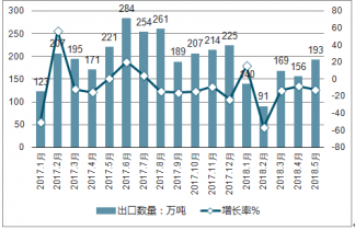 2019年1-5月中國(guó)出口肥料748萬(wàn)噸,同比下降18%;縱觀近五年中國(guó)肥料出口數(shù)量情況,年均復(fù)合增長(zhǎng)率為6.94%。
