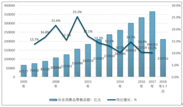 2005年以來我國社會消費品零售總額
