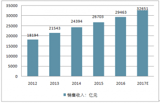 2012-2017年中國醫藥工業銷售收入走勢分析