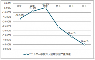 2018年一季度六大區(qū)域水泥產(chǎn)量增速情況