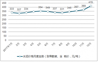 2017年全國(guó)水泥價(jià)格月度走勢(shì)(到位散裝、含 稅價(jià),元/噸)