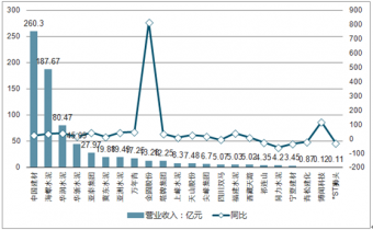 部分水泥行業(yè)上市公司2018年一季度營(yíng)業(yè)收入及同比增長(zhǎng)走勢(shì)