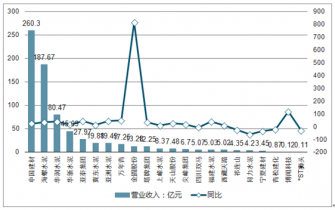 部分水泥行業(yè)上市公司2018年一季度營(yíng)業(yè)收入及同比增長(zhǎng)走勢(shì)