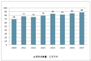 2010-2017年全國瓷磚消費(fèi)量(單位:億平方米)