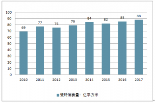 2010-2017年全國瓷磚消費量(單位:億平方米)