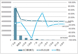 2017年我國第.一季度各省份陶瓷磚出口情況