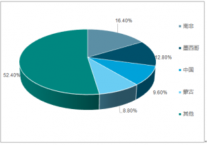 圖表 2015中國按重量計氟化鈣含量>97%的螢石進口來源分布(按進口量)