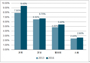 圖表:2012-2018年中國家紡市場占全球份額比較