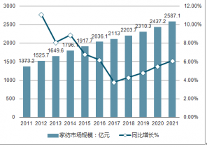 2011-2021年國內家紡行業(yè)市場規(guī)模及預測情況