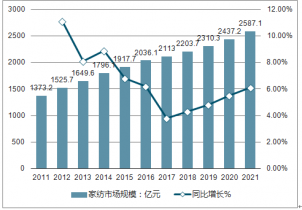 2011-2021年國內(nèi)家紡行業(yè)市場規(guī)模及預(yù)測情況