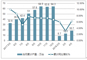 2018年4月,中國金屬切削機床產(chǎn)量5.6萬臺,同比增長12%。2018年1-4月中國金屬切削機床累計產(chǎn)量18.7萬臺,累計增長6.3%。