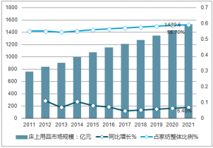 2011-2021年國內(nèi)床上用品市場規(guī)模及預(yù)測情況