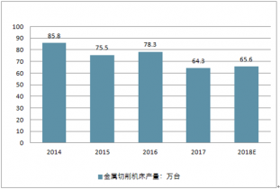 2017年中國(guó)金屬切削機(jī)床累計(jì)產(chǎn)量為64.3萬臺(tái),預(yù)計(jì)2018年中國(guó)金屬切削機(jī)床累計(jì)產(chǎn)量將達(dá)65.6萬臺(tái)。