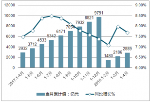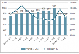 4月份,餐飲收入3024億元,同比增長9.6%;1-4月份,餐飲收入12736億元,同比增長10.1%;其中,4月份,限額以上單位商品零售10540億元,同比增長7.8%。1-4月份,限額以上單位商品零售43248億元,同比增長8.4%。