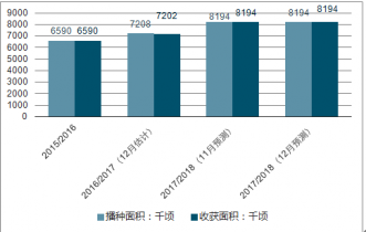 2017/18年度,中國大豆播種面積8194千公頃,比上年度增加986千公頃,增幅13.8%;大豆單產(chǎn)每公頃1817公斤,比上年度增加1.2%;大豆總產(chǎn)量1489萬噸,比上年度增加195萬噸,增幅15.1%;大豆進口量9597萬噸,比上年度增加248萬噸,增幅2.7%;大豆總消費量1.11億噸,比上年度增加245萬噸,增幅2.3%。