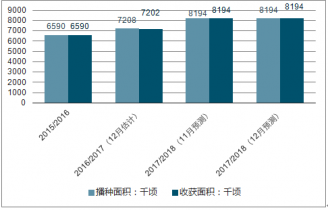 2015-2018年中國(guó)大豆播種面積及收獲面積
