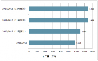 2017/18年度,中國(guó)大豆播種面積8194千公頃,比上年度增加986千公頃,增幅13.8%;大豆單產(chǎn)每公頃1817公斤,比上年度增加1.2%;大豆總產(chǎn)量1489萬(wàn)噸,比上年度增加195萬(wàn)噸,增幅15.1%;大豆進(jìn)口量9597萬(wàn)噸,比上年度增加248萬(wàn)噸,增幅2.7%;大豆總消費(fèi)量1.11億噸,比上年度增加245萬(wàn)噸,增幅2.3%。